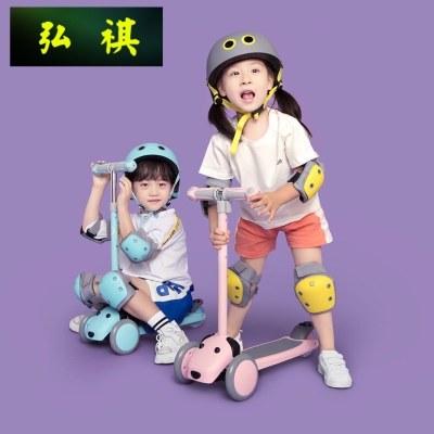 极速滑板车儿童 女k宝宝2-3-6岁折叠款三轮男童单脚加宽轮骑滑滑