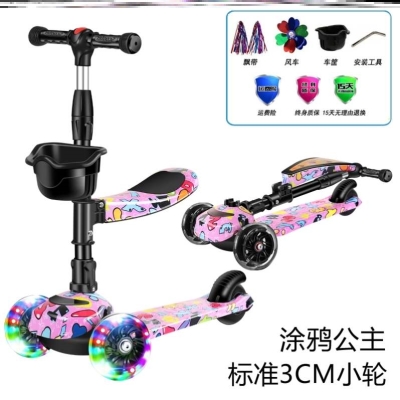 儿童滑板车1-2-3-10岁三合一可坐可推骑滑PU静音轮Baby Stroller