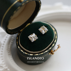18K金迷你方形公主切钻石耳钉2023新品3mm水晶宝石925纯银耳饰女