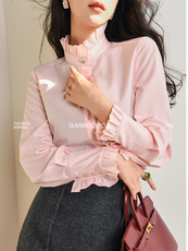 Garbociaga龍喜儿 飘逸如春 木耳边立领泡泡袖高级设计感衬衫3056