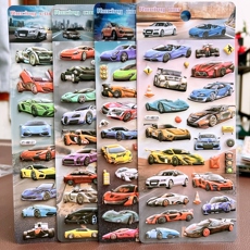 赛车跑车贴纸交通工具小汽车3d立体泡泡贴儿童玩具男孩宝宝粘贴画