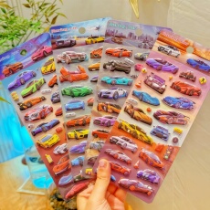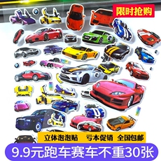 赛车跑车3D立体摇摇灌水贴画sticker儿童男孩汽车卡通注水小贴纸