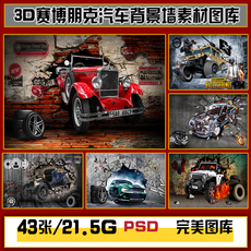 3D立体越野车跑车汽车美容涂鸦背景墙装饰画高清图片图库设计素材
