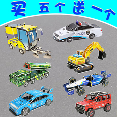交通工具3d立体拼图工程车挖掘机diy手工制作赛车跑车拼装纸模型
