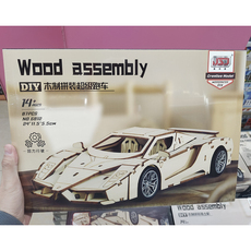 包邮木制仿真汽车拼装模型儿童手工跑车法拉利3D立体拼图益智玩具