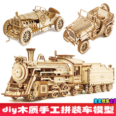 若态高难度3d木制立体拼图成人手工拼装diy车子电车跑车模型玩具
