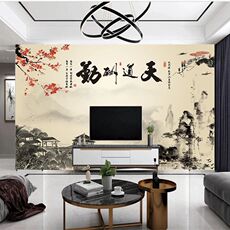 中式电视背景墙壁布沙发墙布山水墙纸客厅壁画大气3d立体轻奢古典