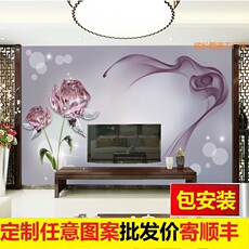 玫瑰花壁画影视墙电视背景墙壁纸大气3d立体L装饰画墙纸家用18d布