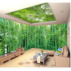 3d立体大自然墙纸客厅绿色森林壁纸卧室电视背景墙壁画5d树林风景