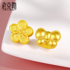 足金999桃花手串珠 3D硬金小桃花隔珠黄金小配件手链配珠手绳配饰