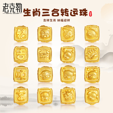 老庙黄金3D硬金三合十二生肖蛇年转运珠足金串珠本命年送节日礼物
