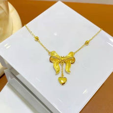 防水手链项链绳喜字锁骨链女款钢丝细绳不褪色黄金3D硬金吊坠挂绳
