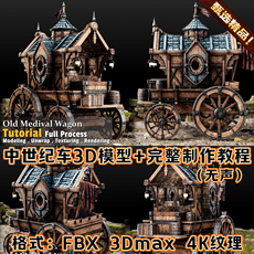 A站精品3Dmax中世纪场景古代奇幻旅游马车房车3D模型FBX+制作教程