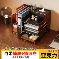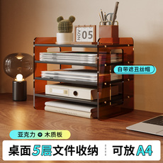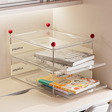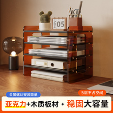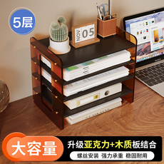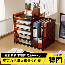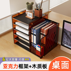亚克力办公桌收纳置物架文件收纳盒办公用品文件架桌面书架多层文件框文件夹A4纸资料档案整理架金属书立架