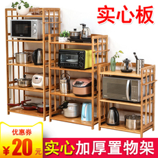 厨房置物架多层落地微波炉架3层4层实木收纳烤箱架储物调料架楠竹