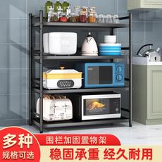 304不锈钢置物架厨房置物架落地式4层围栏收纳货架烤箱杂货架定制