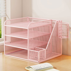 A4桌面文件架文件筐办公收纳架多层收纳盒书架办公室文具用品大全档案架资料置物架书立金属文件架子分类三层