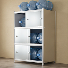 不锈钢置物架带门厨房置物架落地式4层围栏收纳烤箱杂货架橱柜子