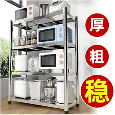 不锈钢厨房置物架微波炉架3层收纳储物架加厚落地三层多层收纳架4