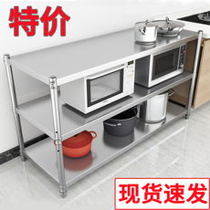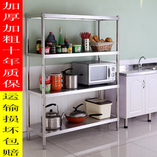包邮不锈钢置物架加厚落地饭店厨房4层微波炉架子厨具收纳架加厚