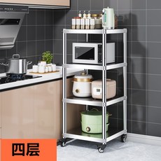 厨房不锈钢置物架4层微波炉烤箱架子厨具收纳架加厚多层落地放锅