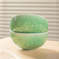 陶瓷碗家用新款5.1英寸大号吃饭碗套装创意梅花浮雕中式青瓷餐具