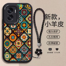 适用荣耀x50i手机壳华为荣耀x50i保护套新款女生全包防摔国风CRT-AN00硅胶软壳小羊皮民族风x5橙黄图腾带手绳