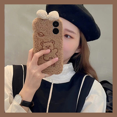 可爱刺绣小熊适用华为畅享70pro手机壳60x立体优畅享50plus蝴蝶结20se秋冬季0e畅想z毛绒9e毛茸茸5g麦芒9软8