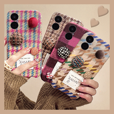 彩色千鸟格格子适用华为畅享70pro手机壳60x立体优畅享50plus纽扣20se秋冬季0e畅想z毛绒9e毛茸茸5g麦芒9软8