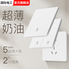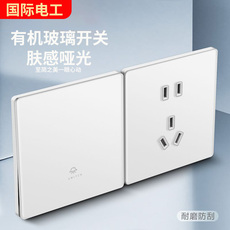 国际电工86型有机玻璃超薄开关肤感哑光奶油白家用5五孔插座面板