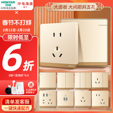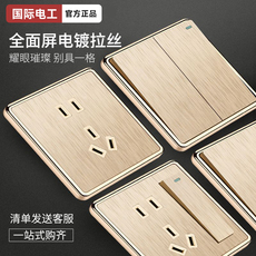 国际电工86型金色开关插座面板16a家用一开五孔带USB多孔双控暗装