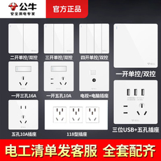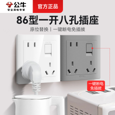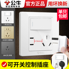 公牛带开关控制插座一开五孔面板暗装墙壁厨房双控二三孔86型家用