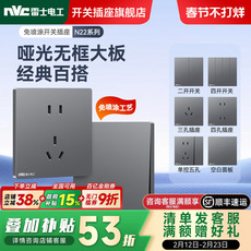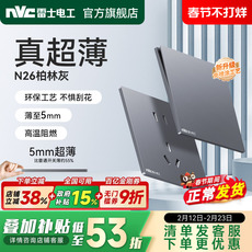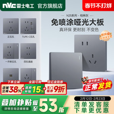 雷士官方开关插座面板86型暗装一开五孔空调三孔电源插座N25灰色