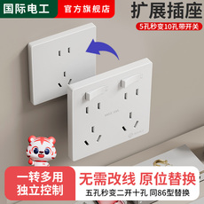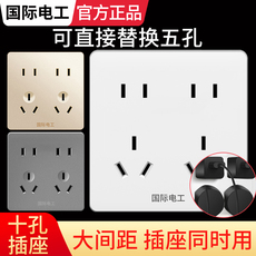 国际电工86型带开关插座面板多孔墙壁暗装电源5五6六7七8八10十孔