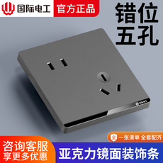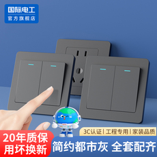 国际电工开关插座面板86型家用墙壁电源暗装五孔七孔16A三孔灰色