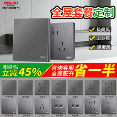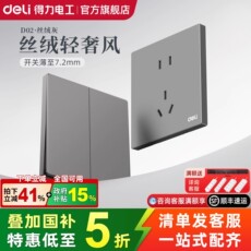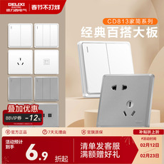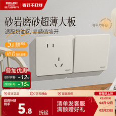 德力西岩彩超薄开关插座奶油风哑光磨砂86面板一开五孔16a砂砾白
