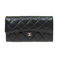9.9新Chanel/香奈儿23P 颗粒压花小牛皮黑色女款卡包钱包