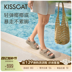 KISS CAT/接吻猫夏季羊皮沙滩鞋魔术贴厚底运动凉鞋KA54386-50