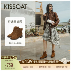 周也/孟佳同款接吻猫[游牧诗人]美拉德西部靴皮带扣骑士短靴加绒