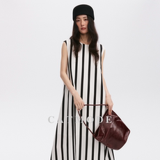 LION&CAT黑白条纹无袖连衣裙 宽松长款 A 字显瘦连衣裙子女