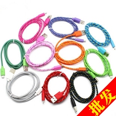 适用三星 小米 HTC 安卓手机数据线 麻绳式 缤纷多彩 充电线 V8口
