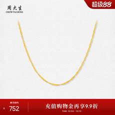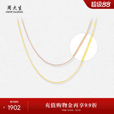 周大生黄18K金项链百搭彩金锁骨颈链水波纹麻绳素链生日礼物女生