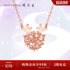 周大生一鹿有你18K金项链玫瑰金鹿角颈链锁骨链生日礼物送女友