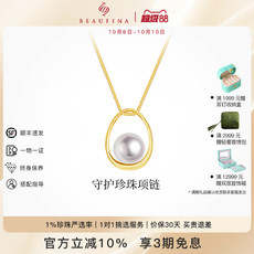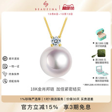 BEAUFINA百分娜18K金Akoya海水珍珠项链戴妃王妃款钻石吊坠锁骨链