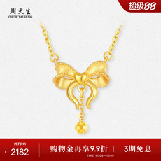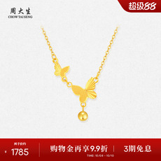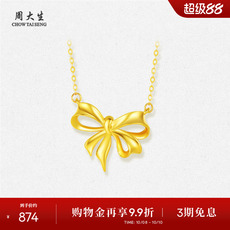 周大生黄18K金项链仙女蝴蝶结彩金套链锁骨链颈饰生日礼物送女友