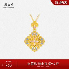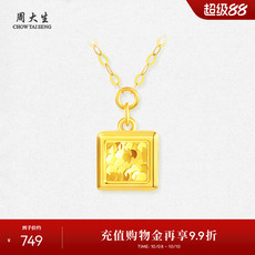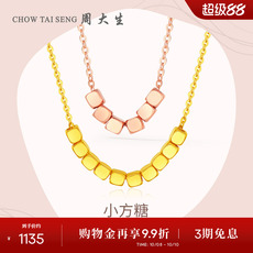 周大生黄18K金项链爆闪碎金小方糖爱心吊坠锁骨链送女友生日礼物
