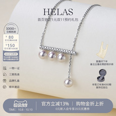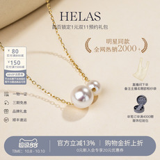 明星同款HELAS赫拉双珠项链Akoya海水珍珠颈链18K金女锁骨链礼物