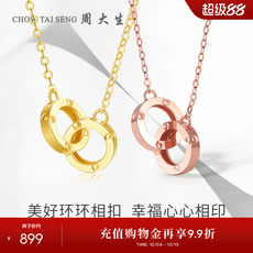 周大生18K金项链O字链玫瑰彩金颈链配吊坠锁骨素链生日礼物送女友