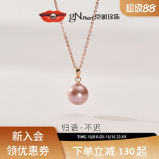 GiO珠宝 Akoya海水珍珠吊坠18K金小方块项链女颈链单颗送女友