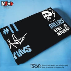 数码喷印欧文 Kyrie Irving手绘签名版美式重磅纯棉街头长短袖T恤